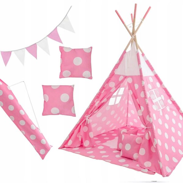 NAMIOT WIGWAM TIPI XXL - PINK/WHITE DOTS