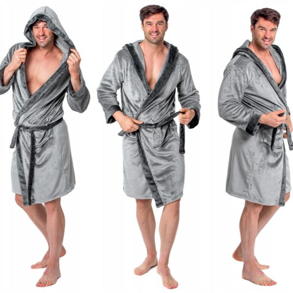 MIĘKKI MĘSKI SZLAFROK COMFORT L.GREY/D.GREY M