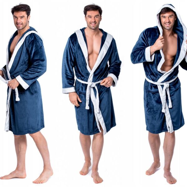 MIĘKKI MĘSKI SZLAFROK COMFORT NAVY/L.GREY M