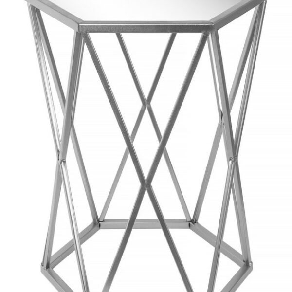 Stolik Kawowy Glamour SREBRNY Metalowy z Lustrem