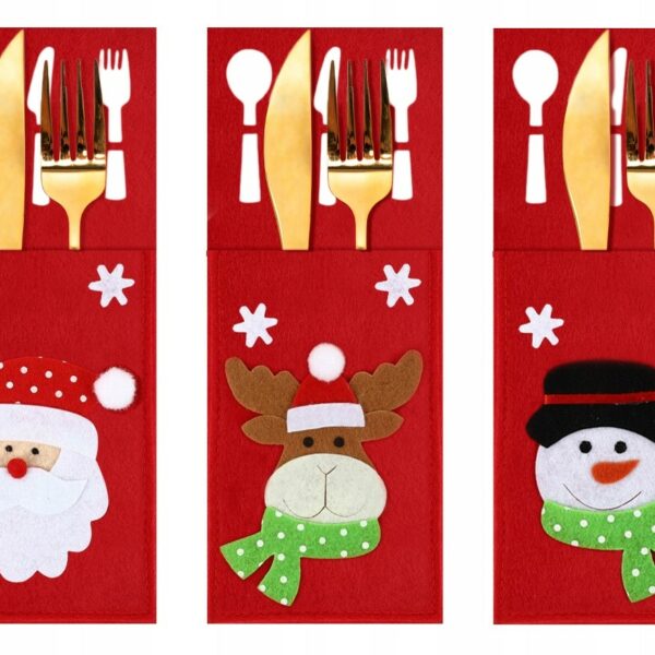 ŚWIĄTECZNE POKROWCE NA SZTUĆCE BAŁWAN RENIFER MIKOŁAJ - 3 SZT