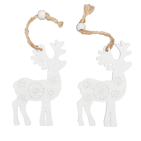 ZESTAW DREWNIANYCH ZAWIESZEK NA CHOINKĘ 2SZT BIAŁE RENIFERY