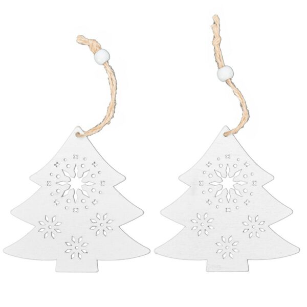 ZESTAW DREWNIANYCH ZAWIESZEK NA CHOINKĘ 2SZT BIAŁE CHOINKI