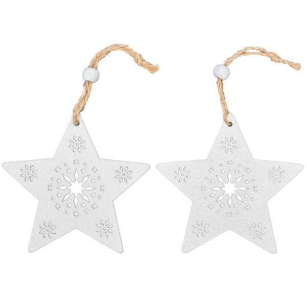 ZESTAW DREWNIANYCH ZAWIESZEK NA CHOINKĘ 2SZT BIAŁE GWIAZDKI