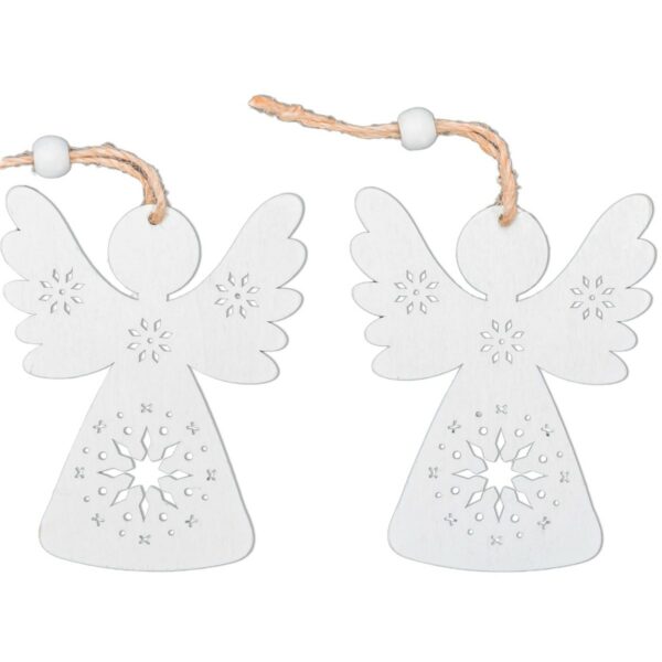 ZESTAW DREWNIANYCH ZAWIESZEK NA CHOINKĘ 2SZT BIAŁE ANIOŁKI