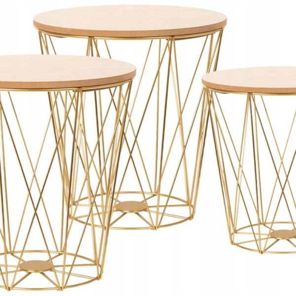 KOMPLET TRZECH STOLIKÓW DRUCIANYCH TWINS GOLD
