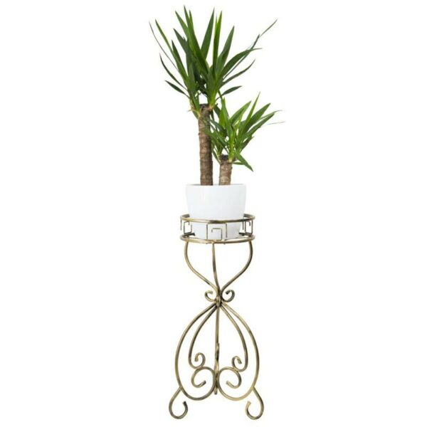 Wykonany z metalu, solidny i wytrzymały stojak na kwiaty w kolorze czarnym w patynie złotej