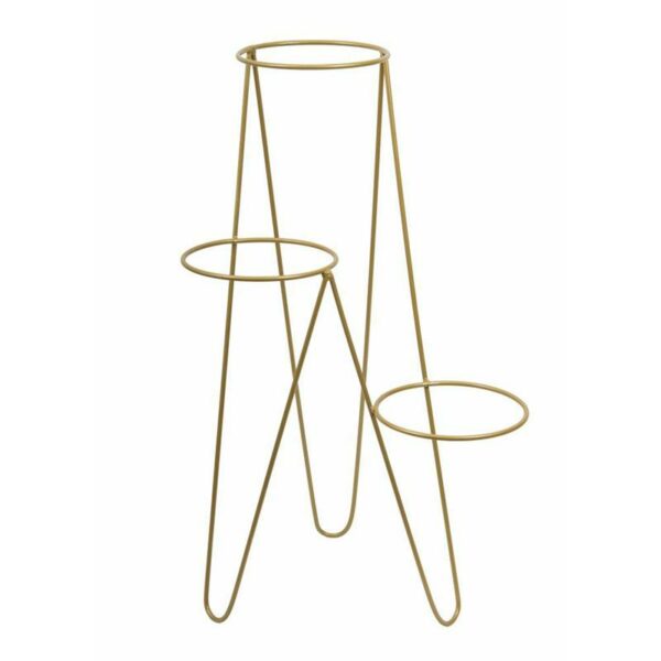 Wykonany z metalu, prosty i stylowy stojak na kwiatki w kolorze złotym