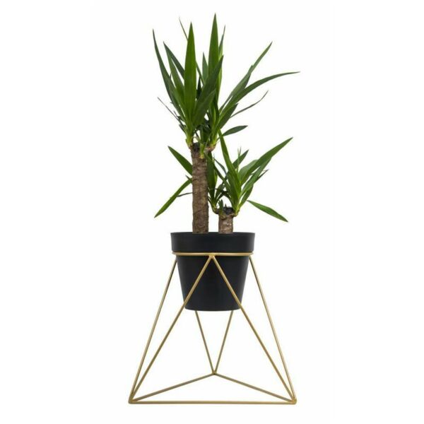 Wykonany z metalu, prosty i stylowy stojak na kwiatki w kolorze złoty