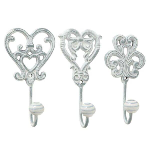 3 wieszaki wykonane z metalu, w kolorze szarym, celowo przecierane