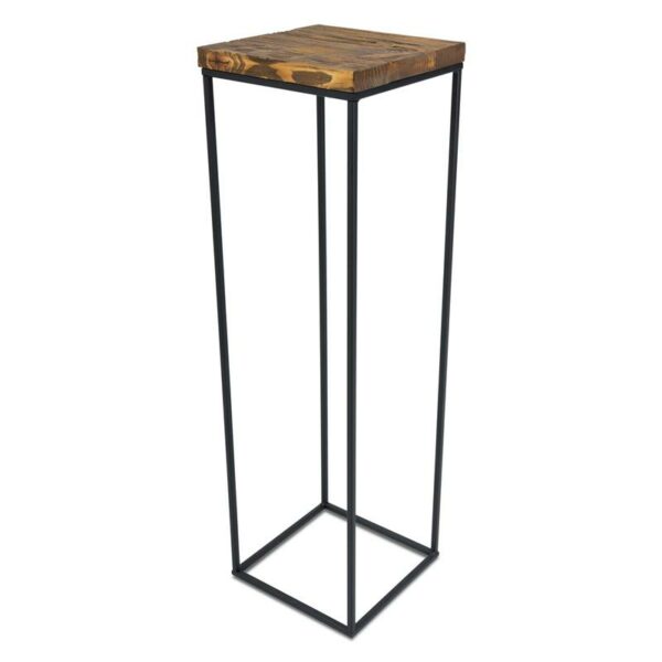 Wykonany z metalu oraz naturalnego ciemnego drewna, praktyczny i elegancki stojak na kwiaty w stylu rustykalnym