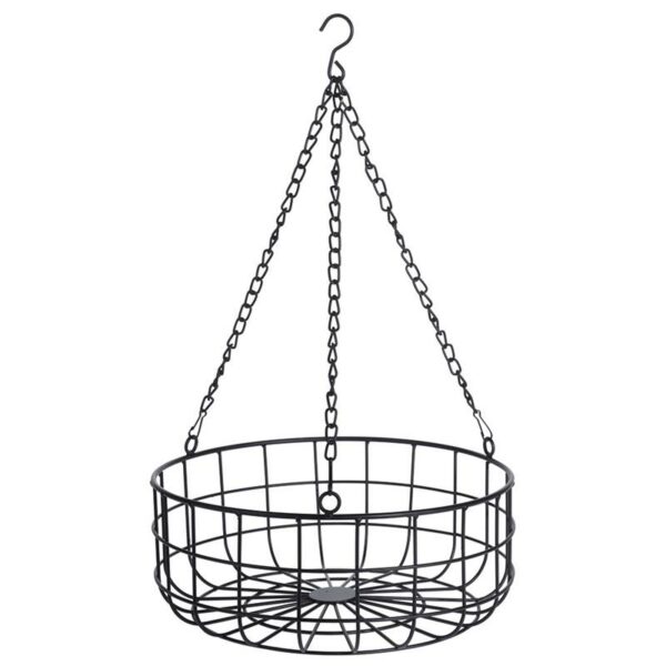 Dekoracyjny koszyk druciany, kwietnik wiszący wykonany z metalu w kolorze czarnym o średnicy 30 cm