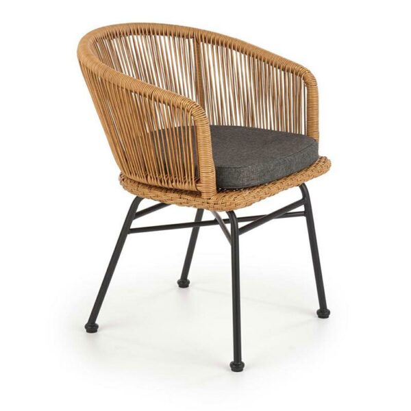 Rattanowe siedzisko w naturalnym kolorze, poduszka w zestawie, nogi czarne, metalowe