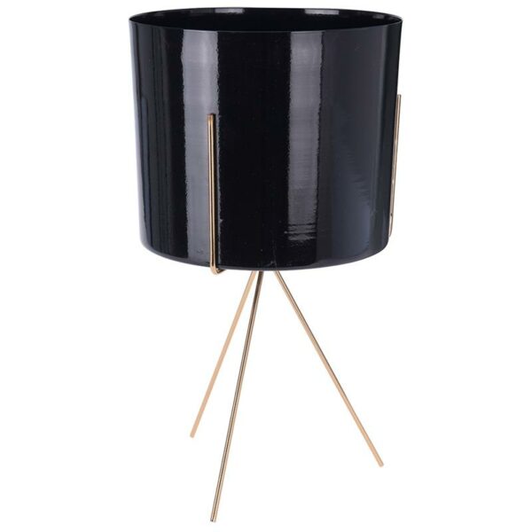 Stojak na kwiaty na metalowym trójnogu, kwietnik z czarną donicą do wnętrz, na balkon, taras o wymiarach: 34x19,5 cm