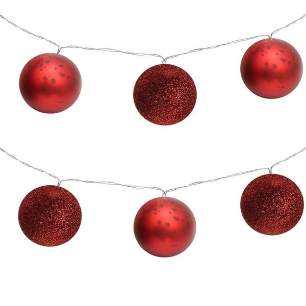 Bombki choinkowe w formie girlandy w klasycznym, czerwonym kolorze, zasilane na baterie, światło Led
