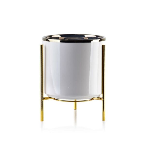 Wykonana z ceramiki, metalowy stojak w kolorze złotym, idealna dekoracja każdego wnętrza czy tarasu