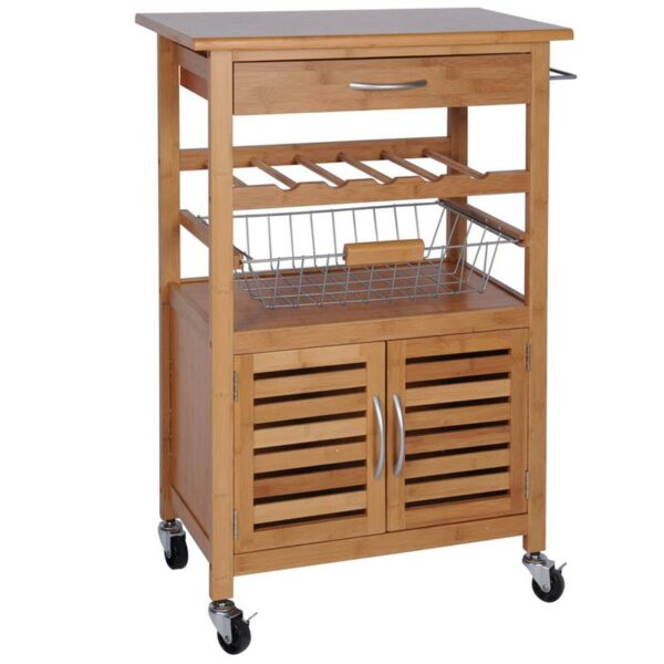 Wykonany z drewna i bambusa, w odcieniu brązu, o wymiarach 36x60x88 cm