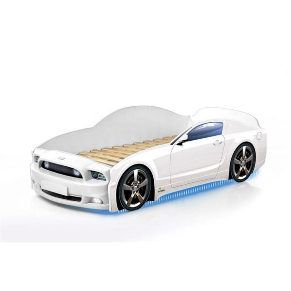 Efektowy design sportowego samochodu, wyposażone w światła LED z przodu i ledowe podświetlenie od spodu, powierzchnia spania: 160x70 cm