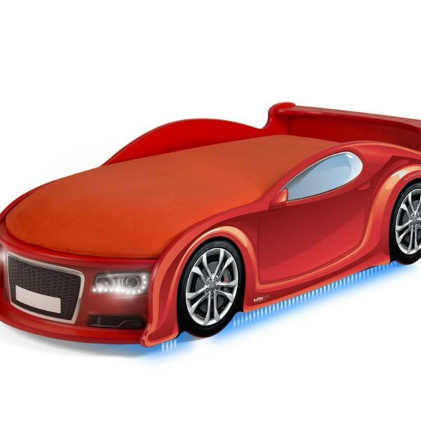 Efektowy design sportowego samochodu, wyposażone w światła LED z przodu i ledowe podświetlenie od spodu, powierzchnia spania: 165x65 cm
