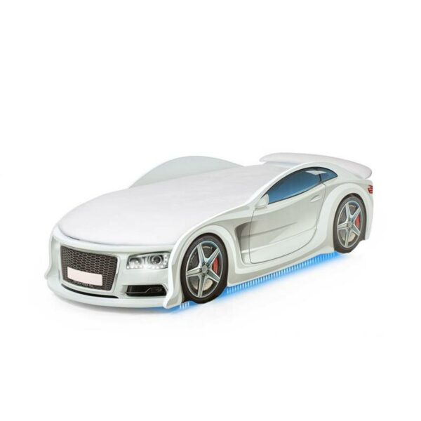 Efektowy design sportowego samochodu, wyposażone w światła LED z przodu i ledowe podświetlenie od spodu, powierzchnia spania: 177x76 cm