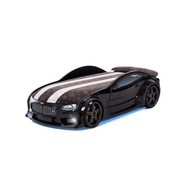 Efektowy design sportowego samochodu, wyposażone w wyjątkowo trwały materac ze sportowej tkaniny Alcantara oraz oświetlenie LED z przodu i od spodu, powierzchnia spania: 180x80 cm