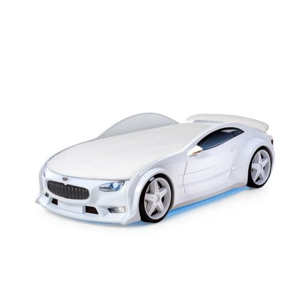 Efektowy design sportowego samochodu, wyposażone w światła LED z przodu i ledowe podświetlenie od spodu, powierzchnia spania: 180x80 cm
