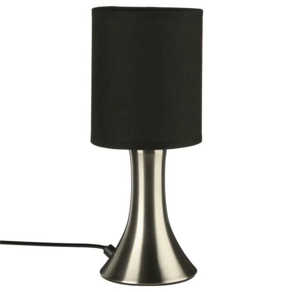 Podstawa wykonana z metalu, materiałowy abażur, idealna do salonu lub sypialni