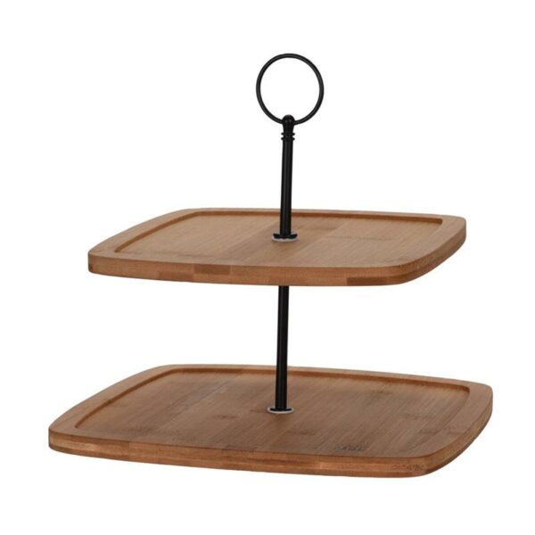 Dekoracyjna taca, kwadaratowa etażerka dwupoziomowa na owoce, ciasto i inne przekąski o wymiarach: 23,5x25x25 cm