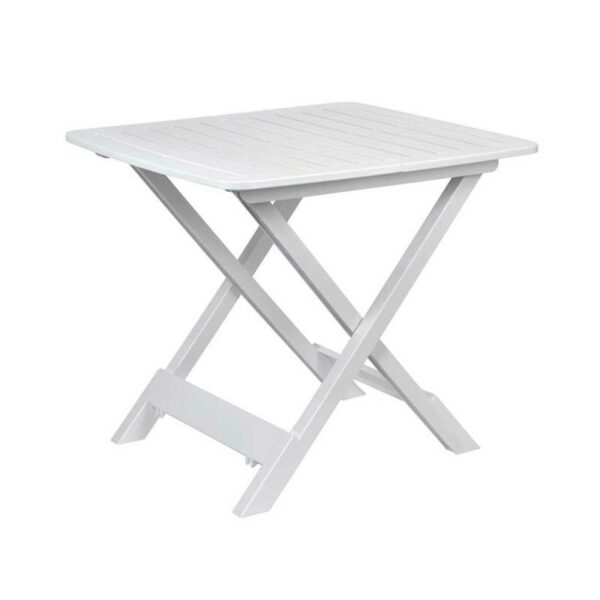 Stolik turystyczny wykonany z tworzywa sztucznego w kolorze białym na taras, balkon, kemping o wymiarach: 79x72x70 cm