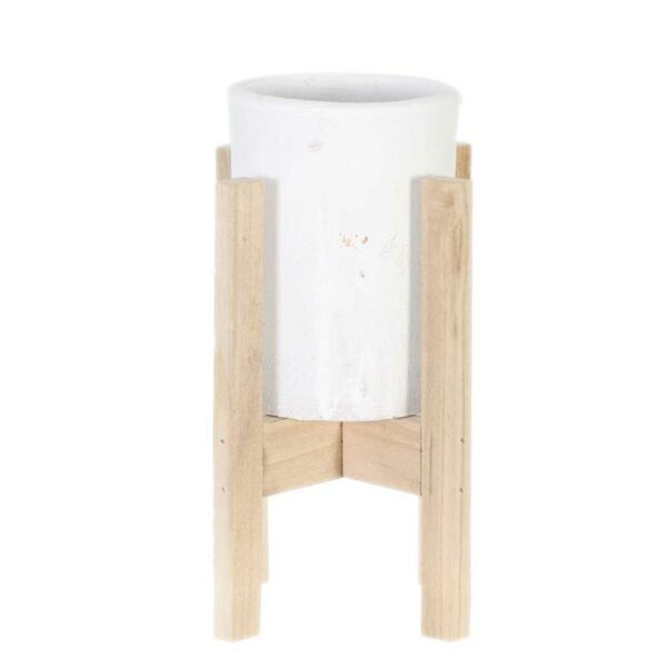 Biała osłonka na kwiaty wykonana z terakoty w stylu Vintage na drewnianym stojaku o wymiarach: 26x12,5 cm