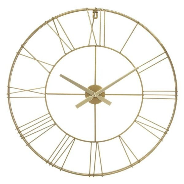 Wykonany z metalu w kolorze złotym, rzymskie cyfry, idealny do wnętrz urządzonych w stylu glamour i loft