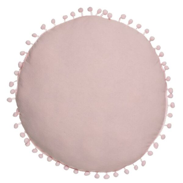 Różowa poducha z pomponami, idealna do pokoju dziecka, średnica 39 cm