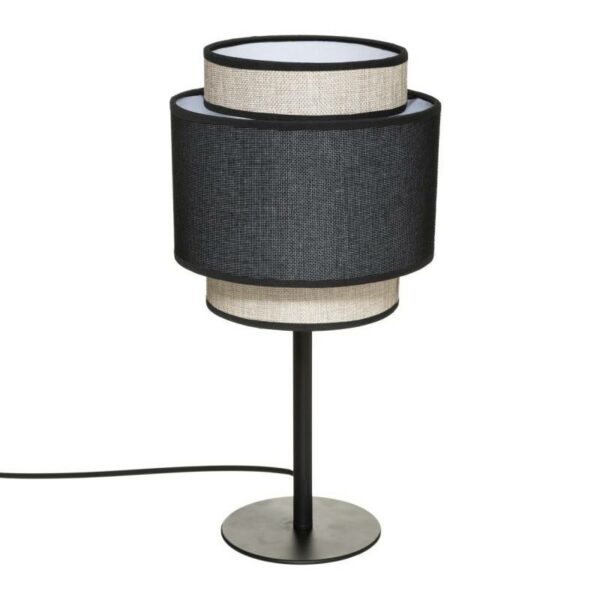Stabilna podstawa o okrągłym kształcie, tekstylny abażur, idealny dodatek do salonu lub sypialni