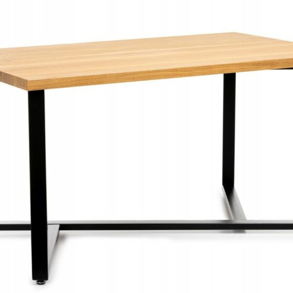 Duży stolik jadalniany lub konferencyjny wykonany z metalu oraz naturalnego litego drewna dębowego, wymiar blatu 150x90 cm idealny do jadalni, salonu lub biura. Kolor blatu jasny dąb.