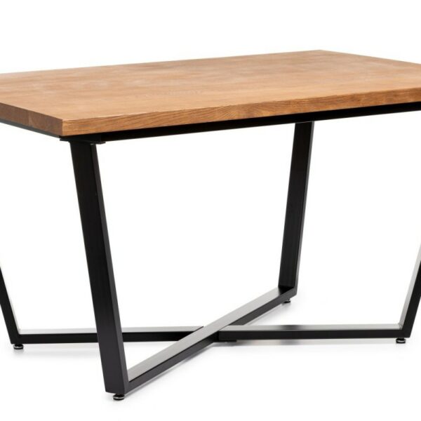 Duży stolik jadalniany lub konferencyjny wykonany z metalu oraz naturalnego litego drewna dębowego, wymiar blatu 150x90 cm idealny do jadalni, salonu lub biura. Kolor blatu ciemny dąb.