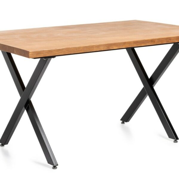 Duży stolik jadalniany lub konferencyjny wykonany z metalu oraz naturalnego litego drewna dębowego, wymiar blatu 150x90 cm idealny do jadalni, salonu lub biura. Kolor blatu ciemny dąb.