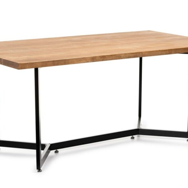 Duży stolik jadalniany lub konferencyjny wykonany z metalu oraz naturalnego litego drewna dębowego, wymiar blatu 180x100 cm idealny do jadalni, salonu lub biura. Kolor blatu ciemny dąb.