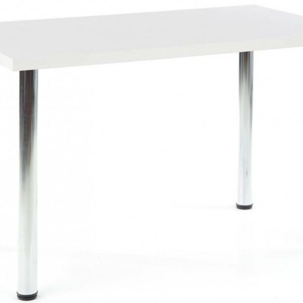 Podstawa ze stali chromowanej w kolorze srebrnym, blat wykonany z płyty meblowej z okleiną w kolorze matowej bieli, stanowił będzie eleganckie uzupełnienie wystroju wnętrz i lokali