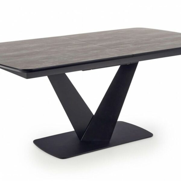 Stalowa podstawa lakierowana na czarno, wierzchnia część blatu wykonana z płyty HPL w kolorze ciemny popiel, maksymalna szerokość 230 cm