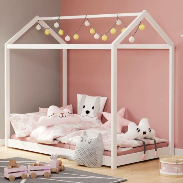 Wykonane z wysokiej jakości drewna sosnowego lakierowanego na biało, bez materaca, mebel do samodzielnego montażu
