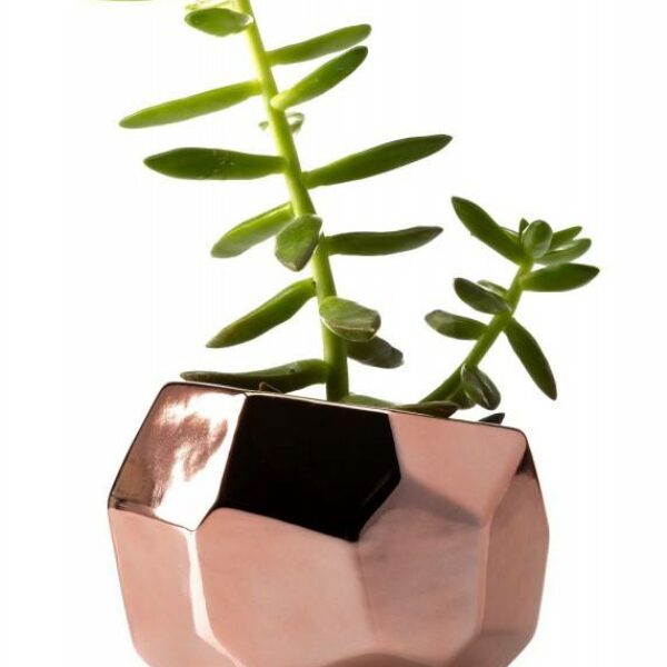 Wykonana z ceramiki w kolorze różowego złota. Wymiary: 11x11x8 cm.
