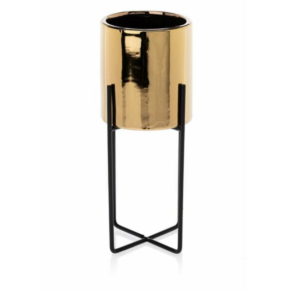 Wykonana z ceramiki w kolorze złotym, uchwyt doniczki wykonano z metalu w kolorze czarnym. Całkowita wysokość zestawu wynosi 23,6 cm.