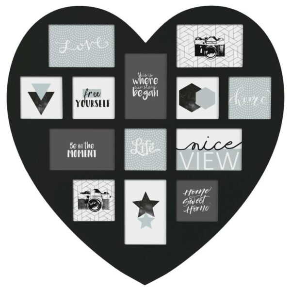 Wykonana z tworzywa sztucznego, przyozdobiona dekoracyjnymi wkładkami, na fotografie w formacie 10x10 cm (x7) i 10x15 cm (x6)