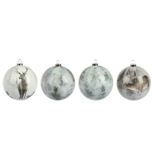 Zestaw dekoracyjnych bombek do powieszenia na choince lub stroiku, wykonane z tworzywa typu polyfoam z zimowym krajobrazem, o średnicy 8 cm