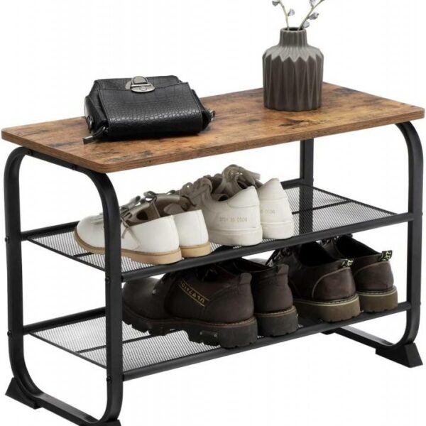 Wykonany z metalu i solidnej płyty MDF, praktyczna i wytrzymała szafka na buty w stylu rystykalnym, loft oraz industrialnym