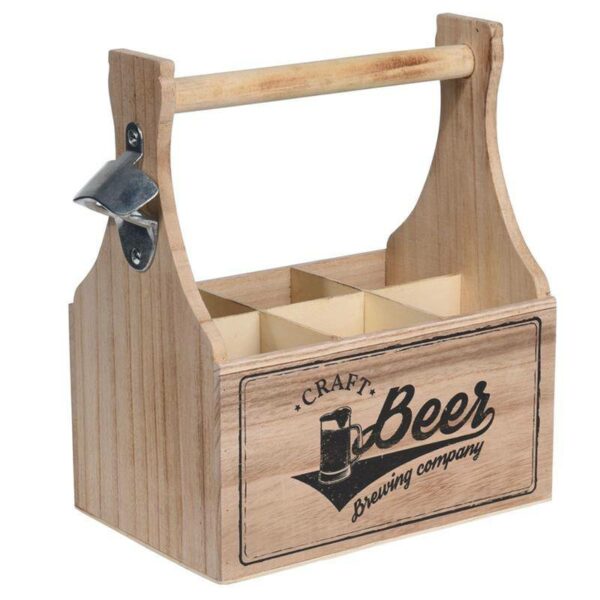 Drewniana skrzynka na piwo Beer z sześcioma przegródkami, odcienie brązu, z otwieraczem do butelek