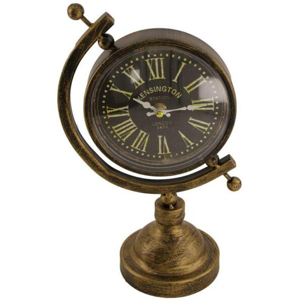 Stojący, metalowy zegar w kształcie globusa na komodę czy szafkę nocną, w stylu Vintage o wymiarach: 35x19x12 cm