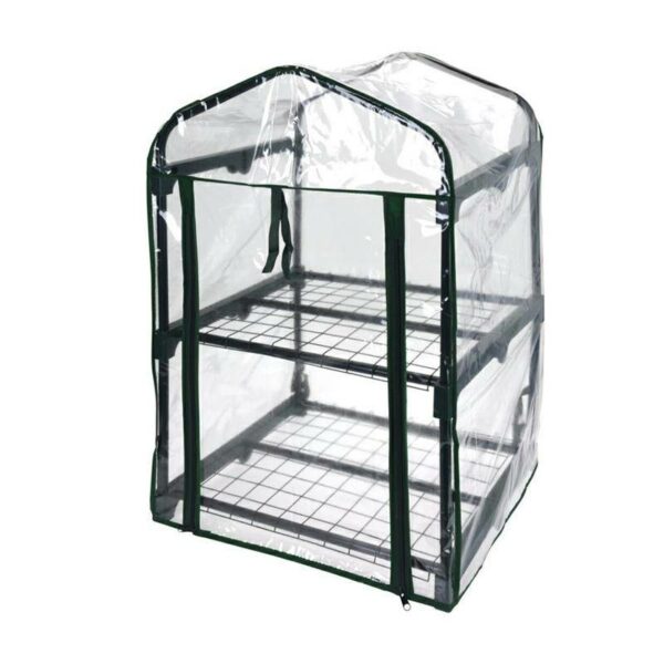 Przenośna szklarnia piętrowa z 2 półkami idealna do ogrodu, na balkon, taras na metalowym stelażu wykonana z wielowarstwowej folii PE o wymiarach: 80x50x45 cm