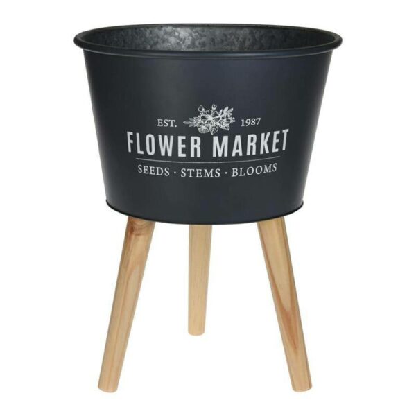 Metalowa donica na kwiaty i zioła do wnętrz, ogrodu, na taras, balkon z ozdobnym napisem o wymiarach: 46x35x22,5 cm