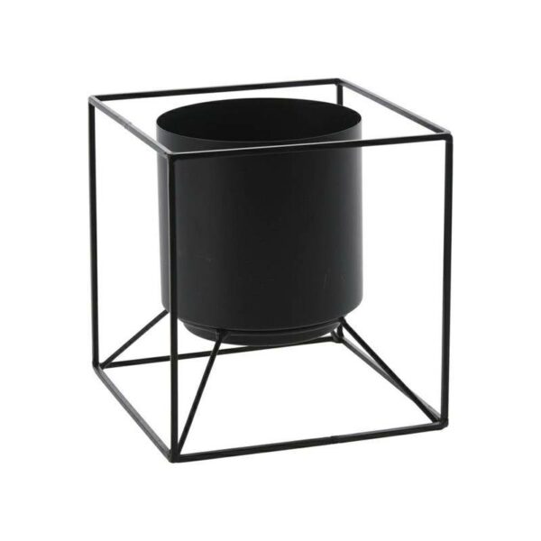 Kwietnik, stojak na kwiaty z metalową osłonką do domu i ogrodu, w kolorze czarnym, o wymiarach stojaka: 18x18 cm, wymiar donicy: 13x13 cm